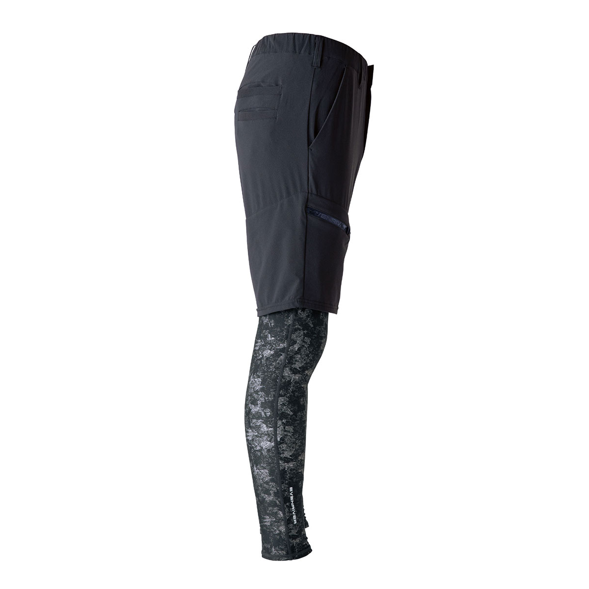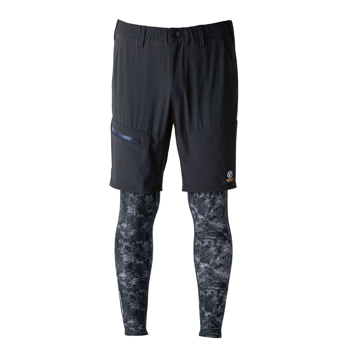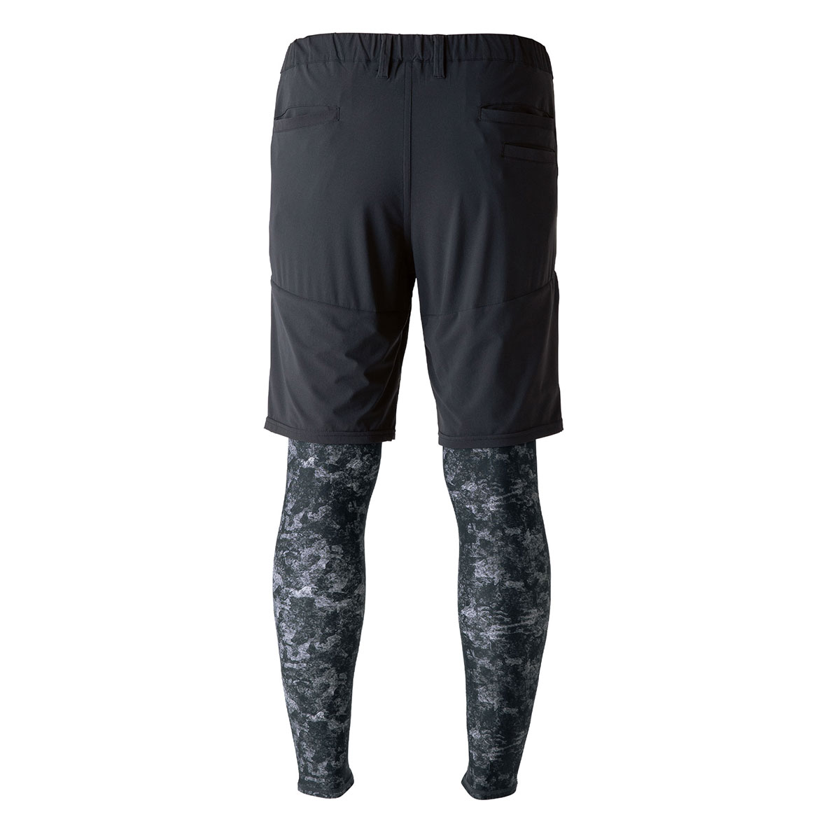 スタイリッシュかつ快適になった進化型フェイクレイヤードショートパンツ。 レッグカバーのずり落ちを防止する一体縫製で、外見からは全く違和感のない自然な重ね着スタイルが完成。冷感性の高いナイロン混素材を全体に採用し、クールな着心地を実現する。 レッグパーツにカモフラージュ柄を施したモデル 人気のフェイクレイヤードショートパンツ「EX35」に限定カラー。スポーツやアウトドアなどのアクティビティにも対応するスタイリッシュなデザインとカラー展開。- ●接触冷感素材