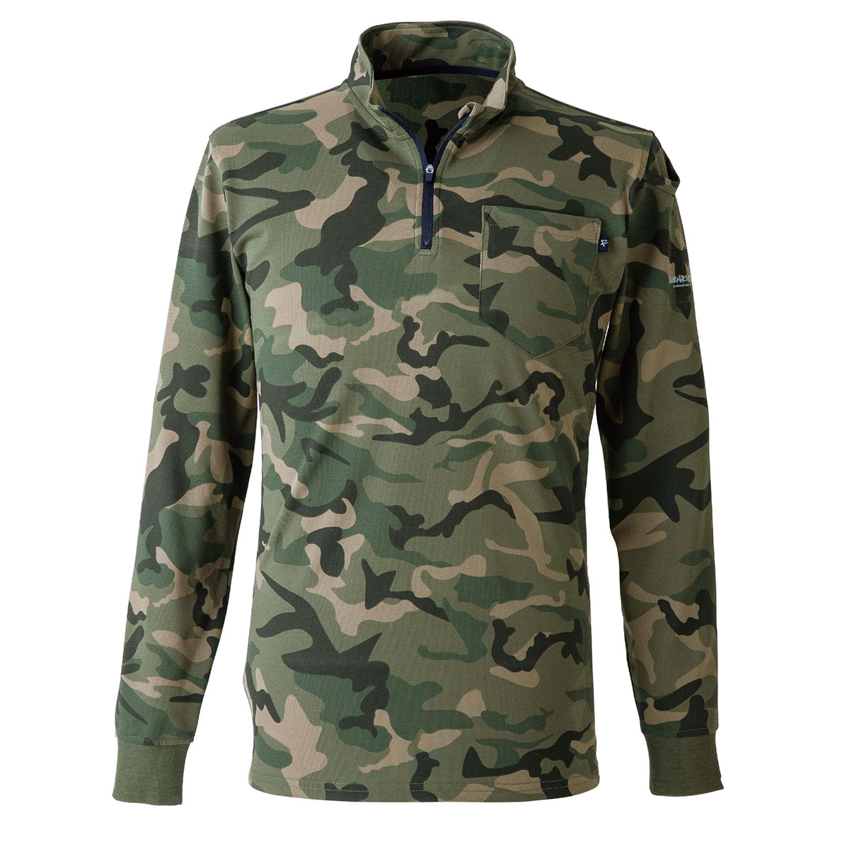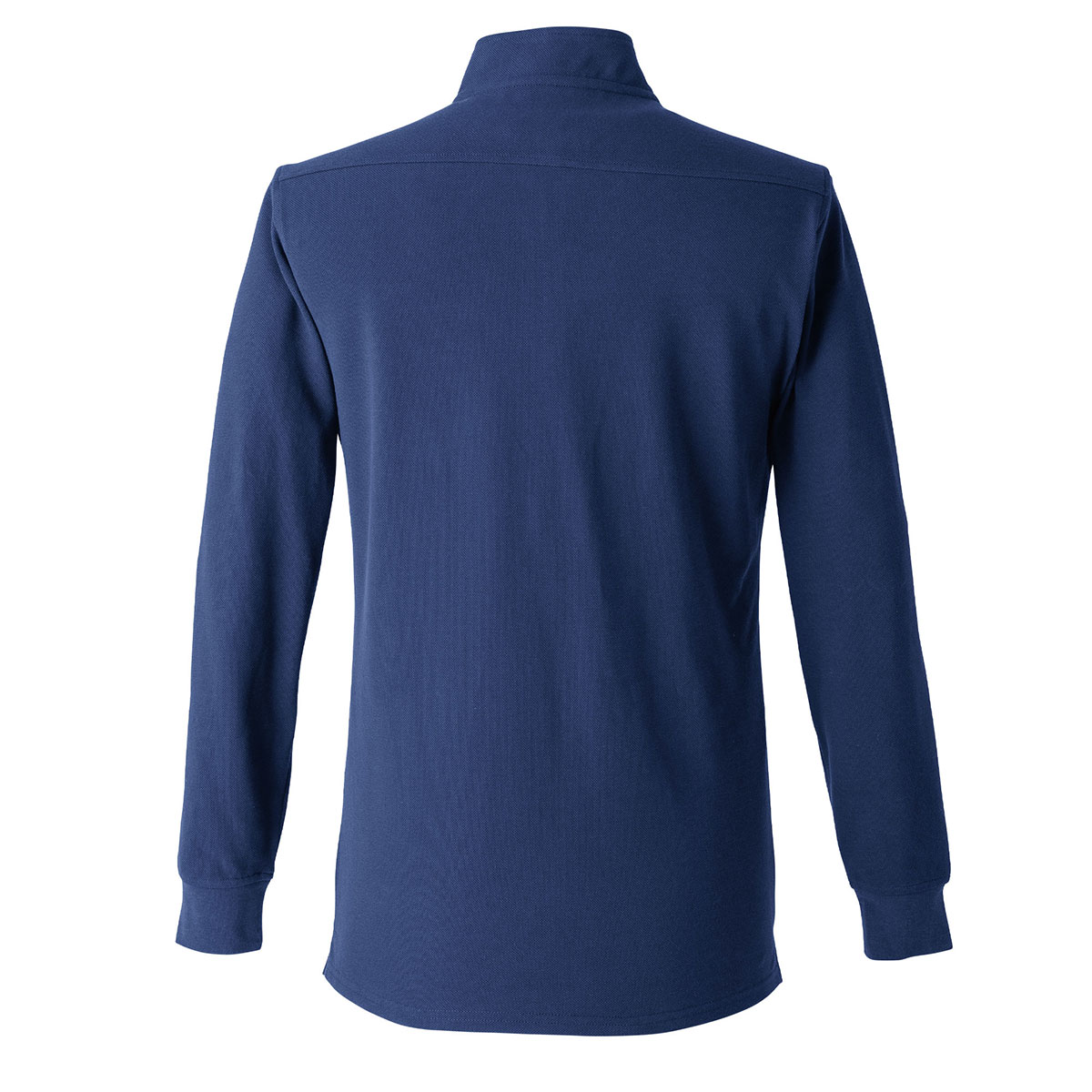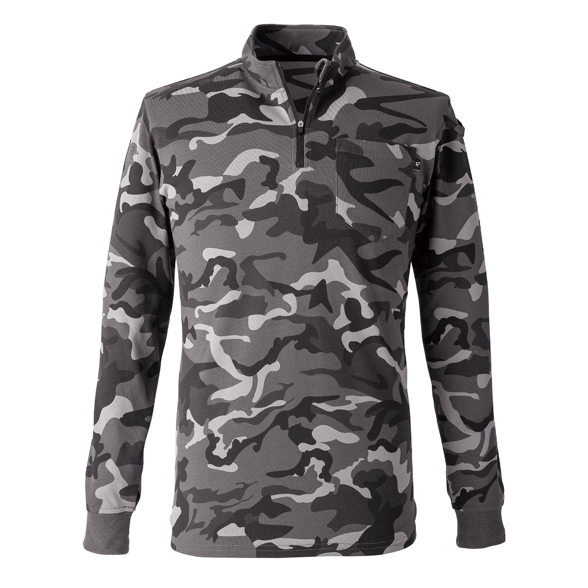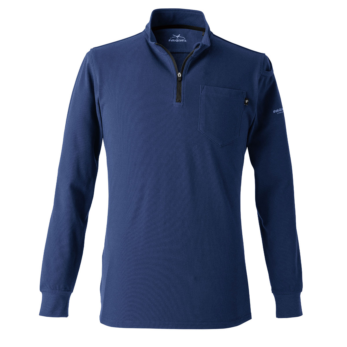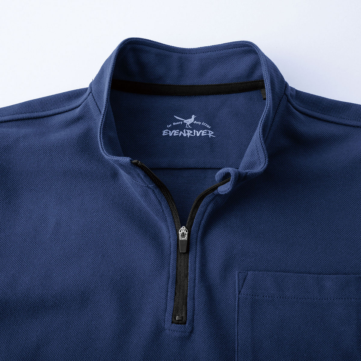 綿混素材特有の汗をよく吸い、やわらかな肌触りとしっかりとした丈夫な素材感が人気。 ジップネック長袖シャツタイプ。- ●左胸ポケット