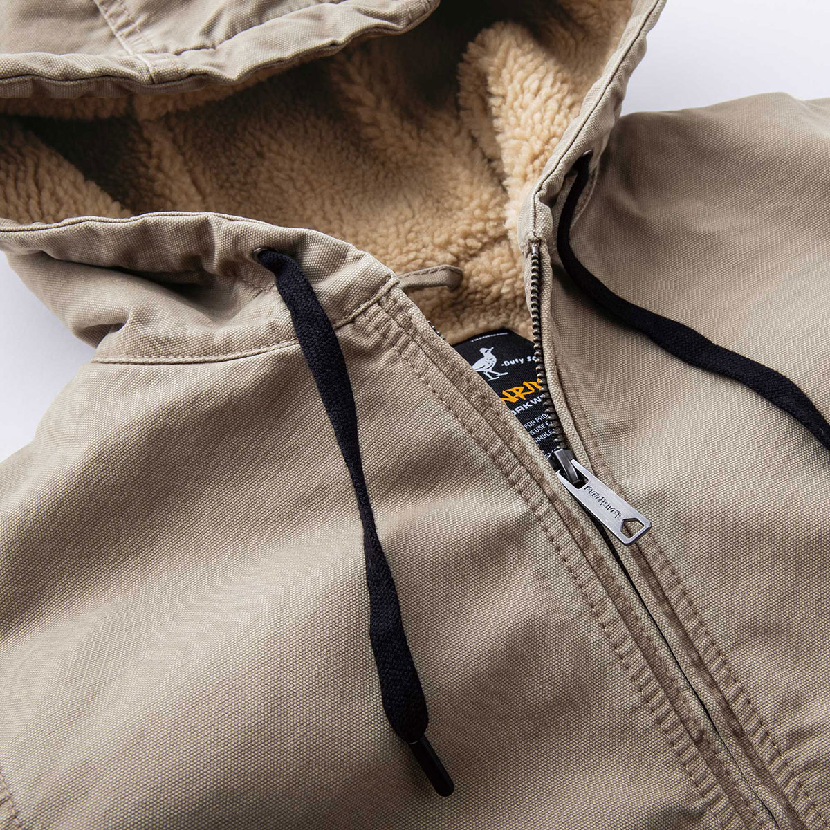 ざっくりとした肌触りの無骨さとどこか懐かしい、オールドアメリカンな雰囲気が満載。 裏地はシープボア調を再現するなど、徹底した古着感を演出している。 フーディタイプ- ●フロントファスナー