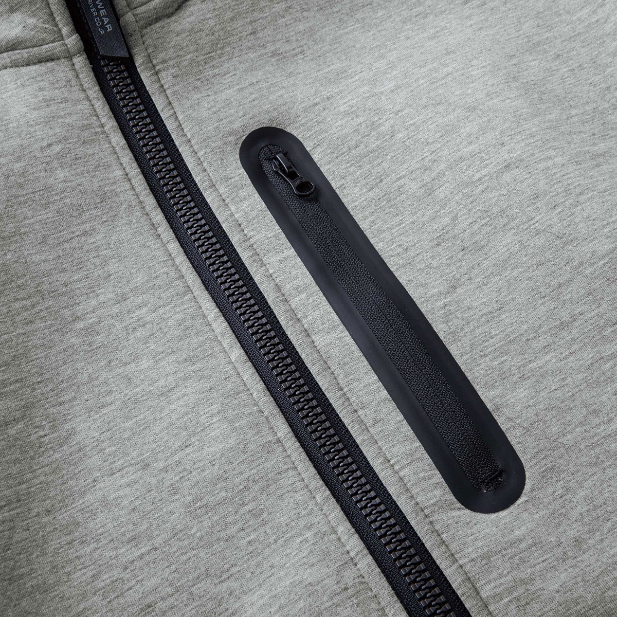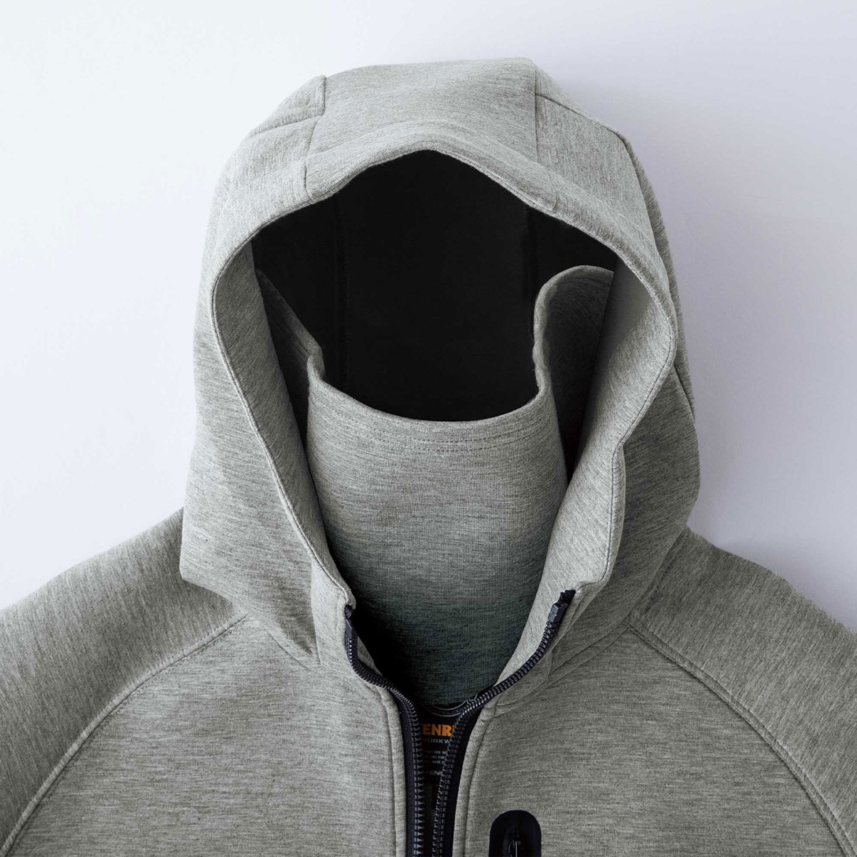 「飽きのこないシンプルデザインのフーディは首元にうれしいギミックを搭載」